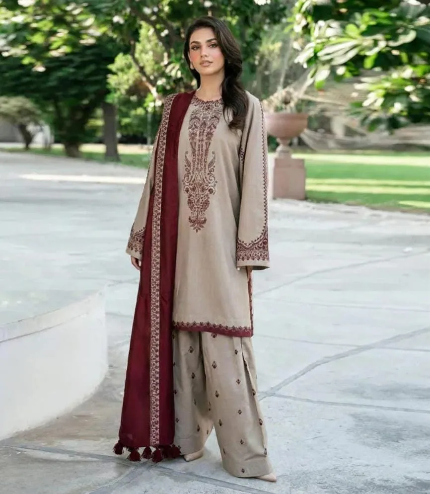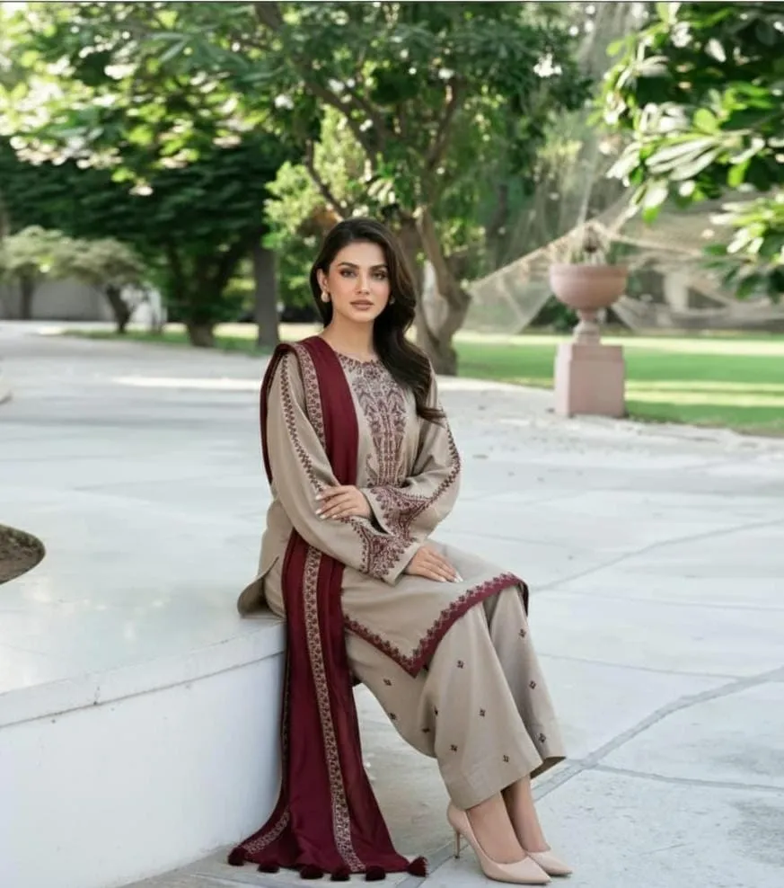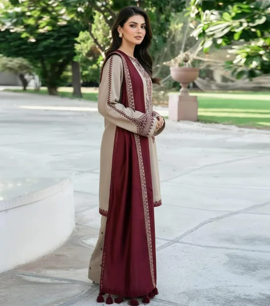 Shawl: Beautifully embroidered shawl, enhancing the ensemble with a sophisticated finish.